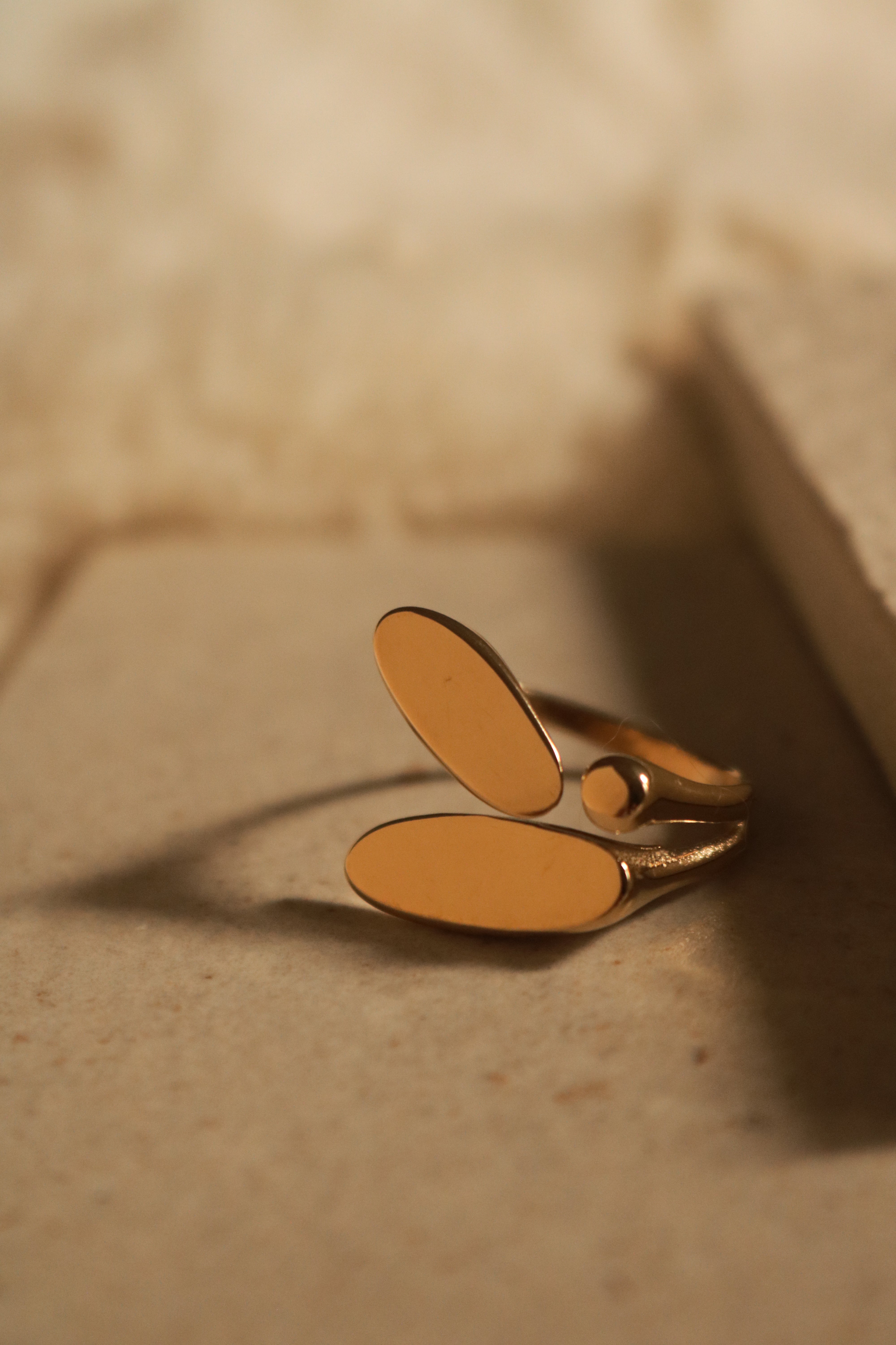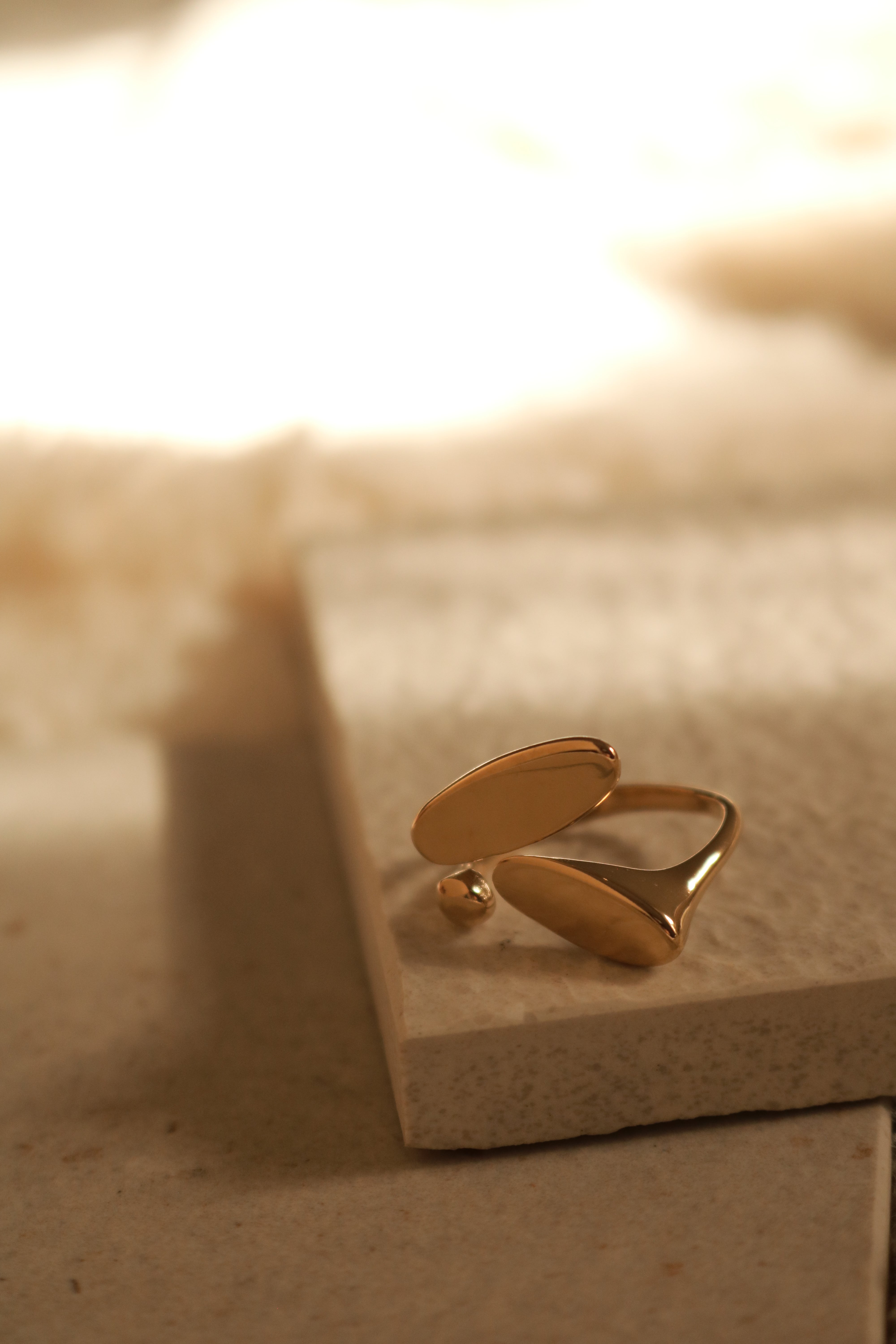 Anel Triple Shine em aço inoxidável, ajustável e com três pontos de brilho que criam um visual moderno e marcante. Resistente, confortável e perfeito para elevar qualquer look.