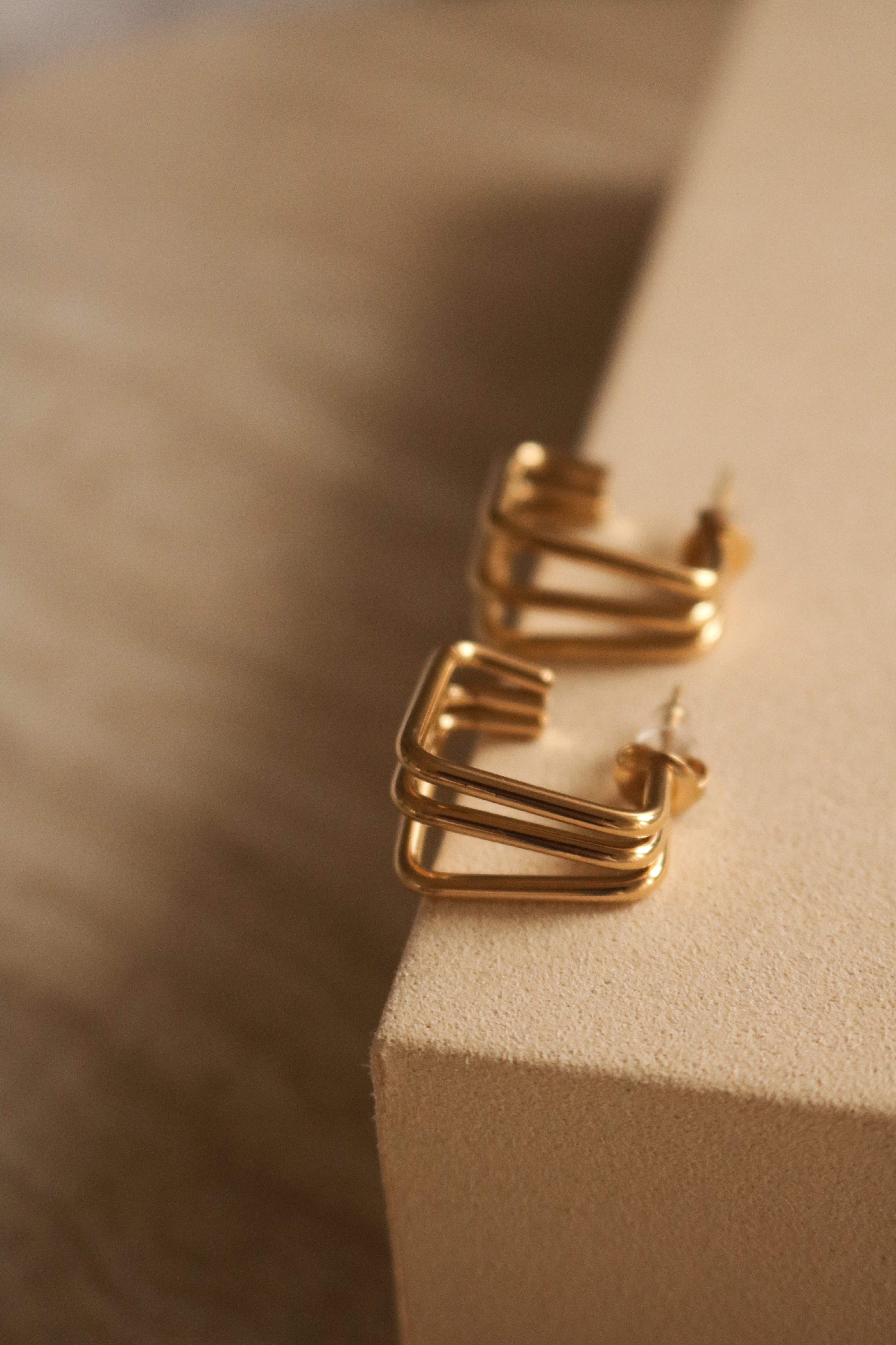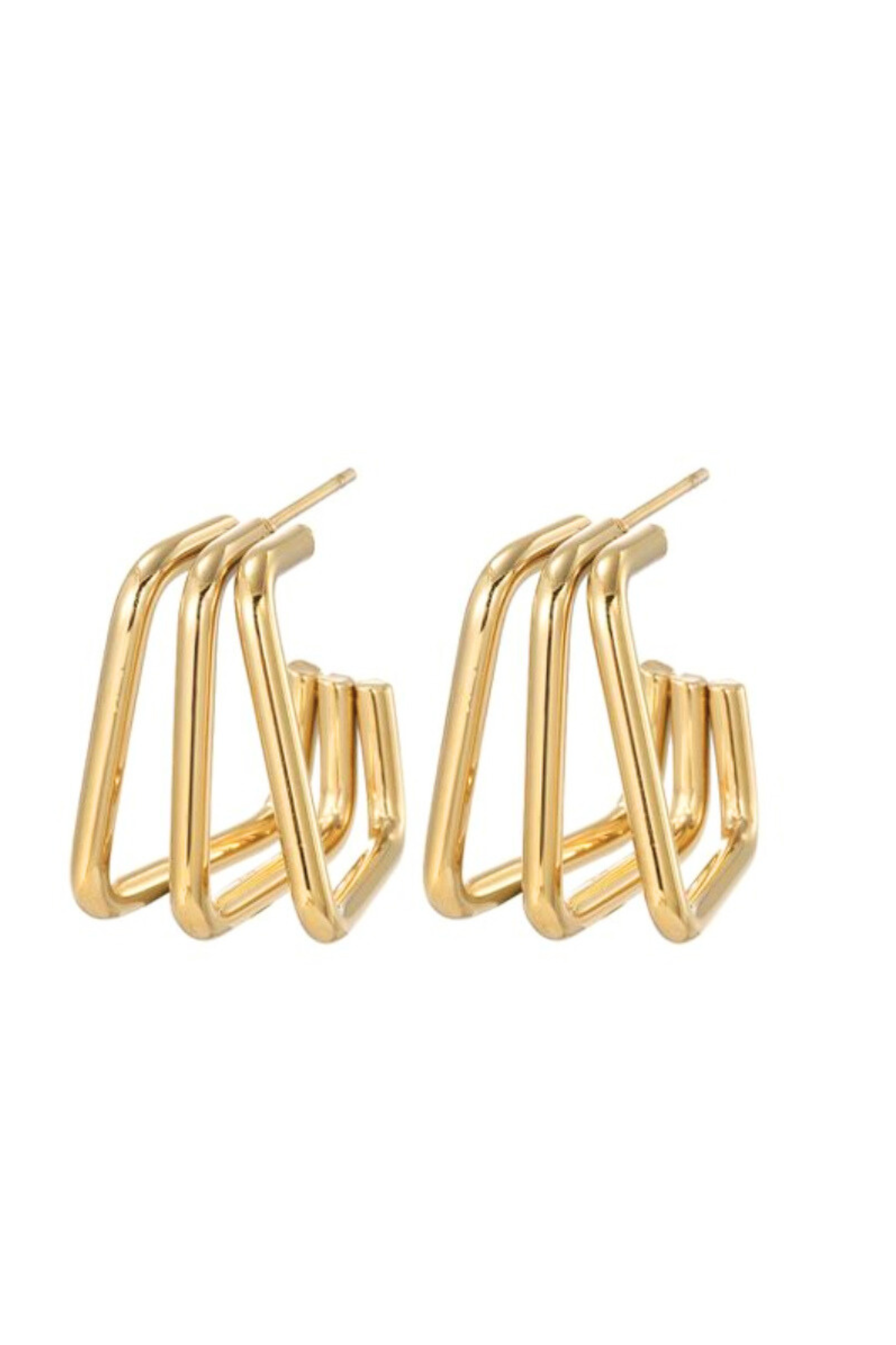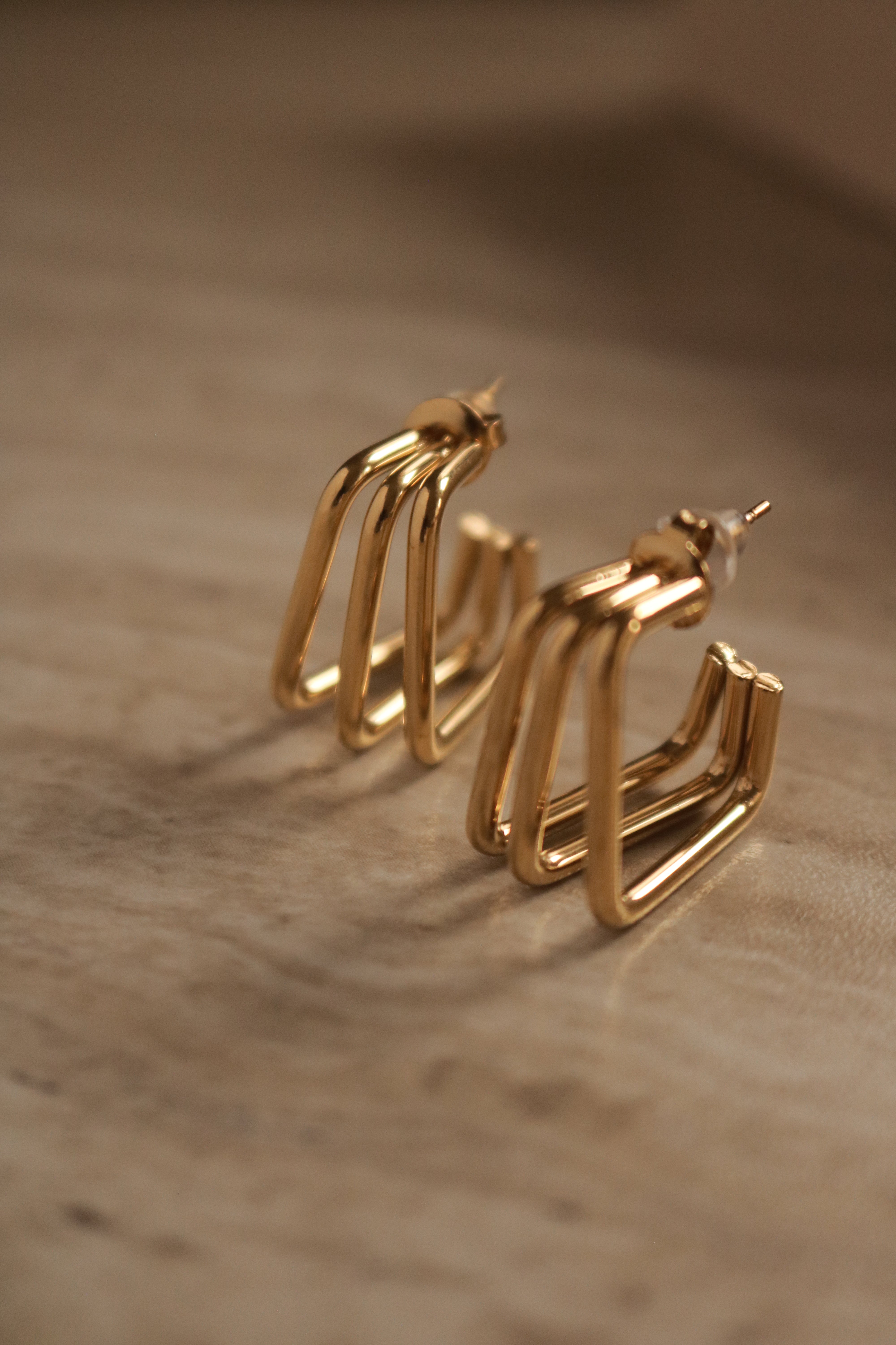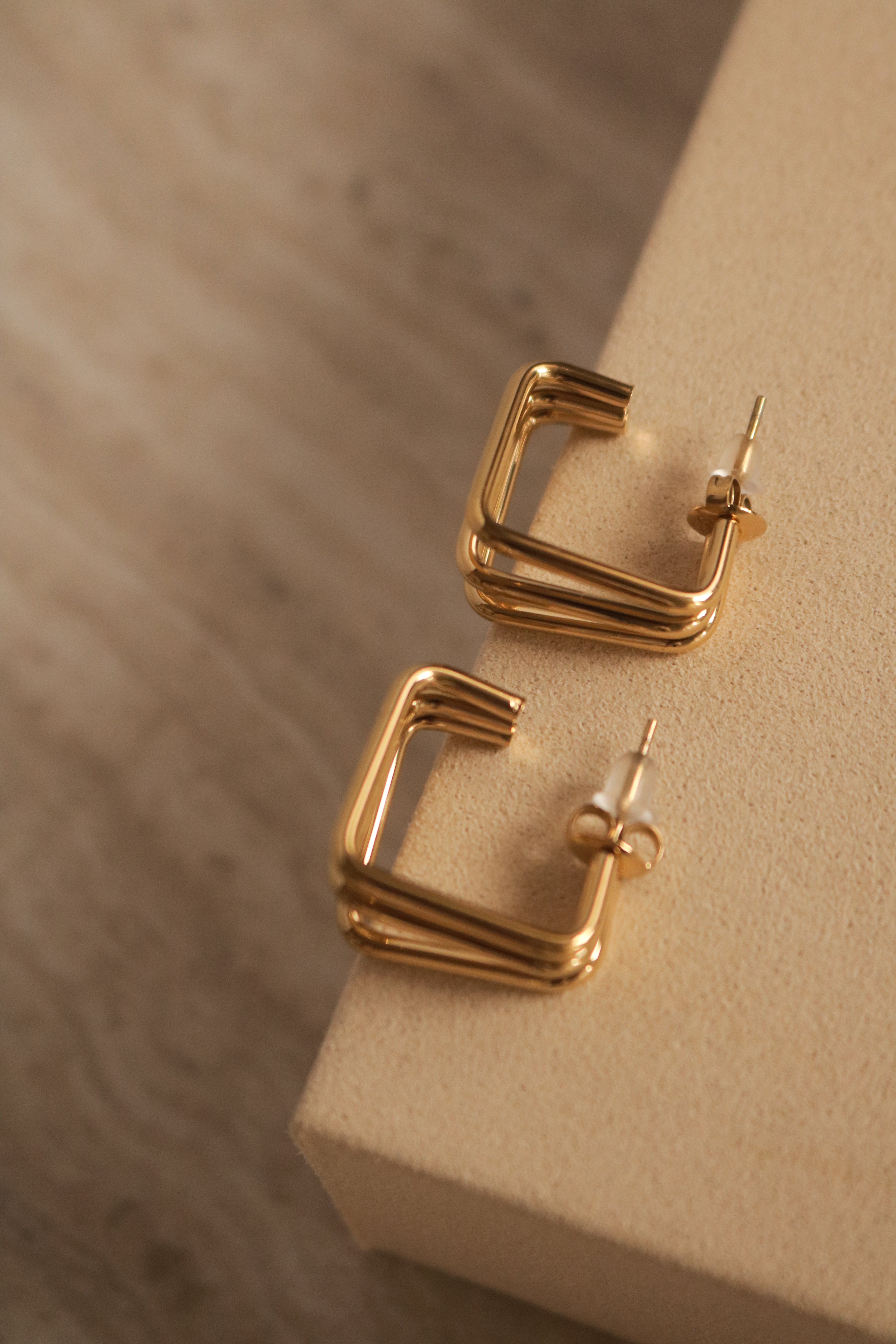 Brincos de argola em formato quadrado, uma interpretação moderna de um clássico intemporal.