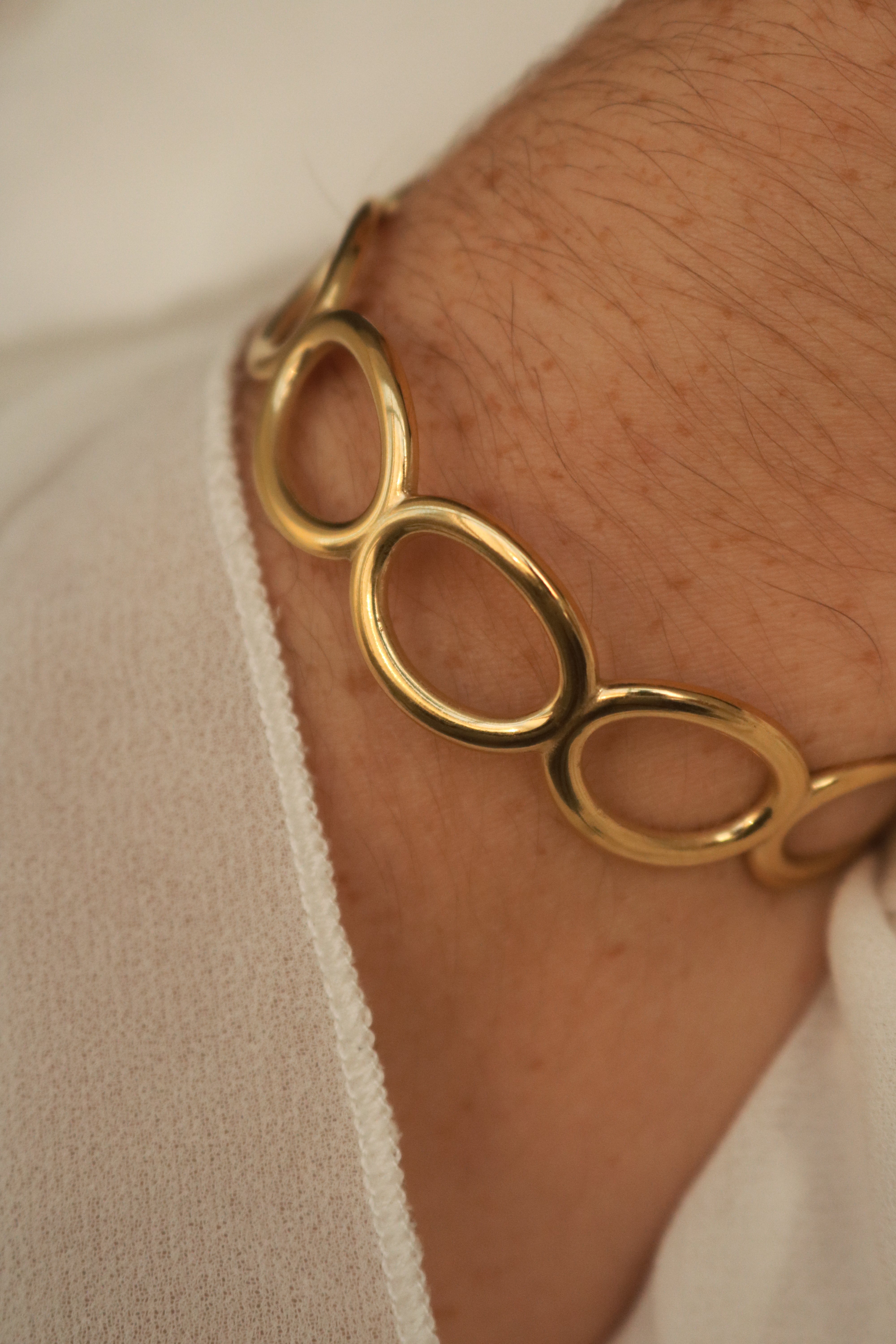 Bracelete Aros é a escolha certa para quem procura estilo e personalidade. Os seus aros entrelaçados criam um visual contemporâneo e elegante