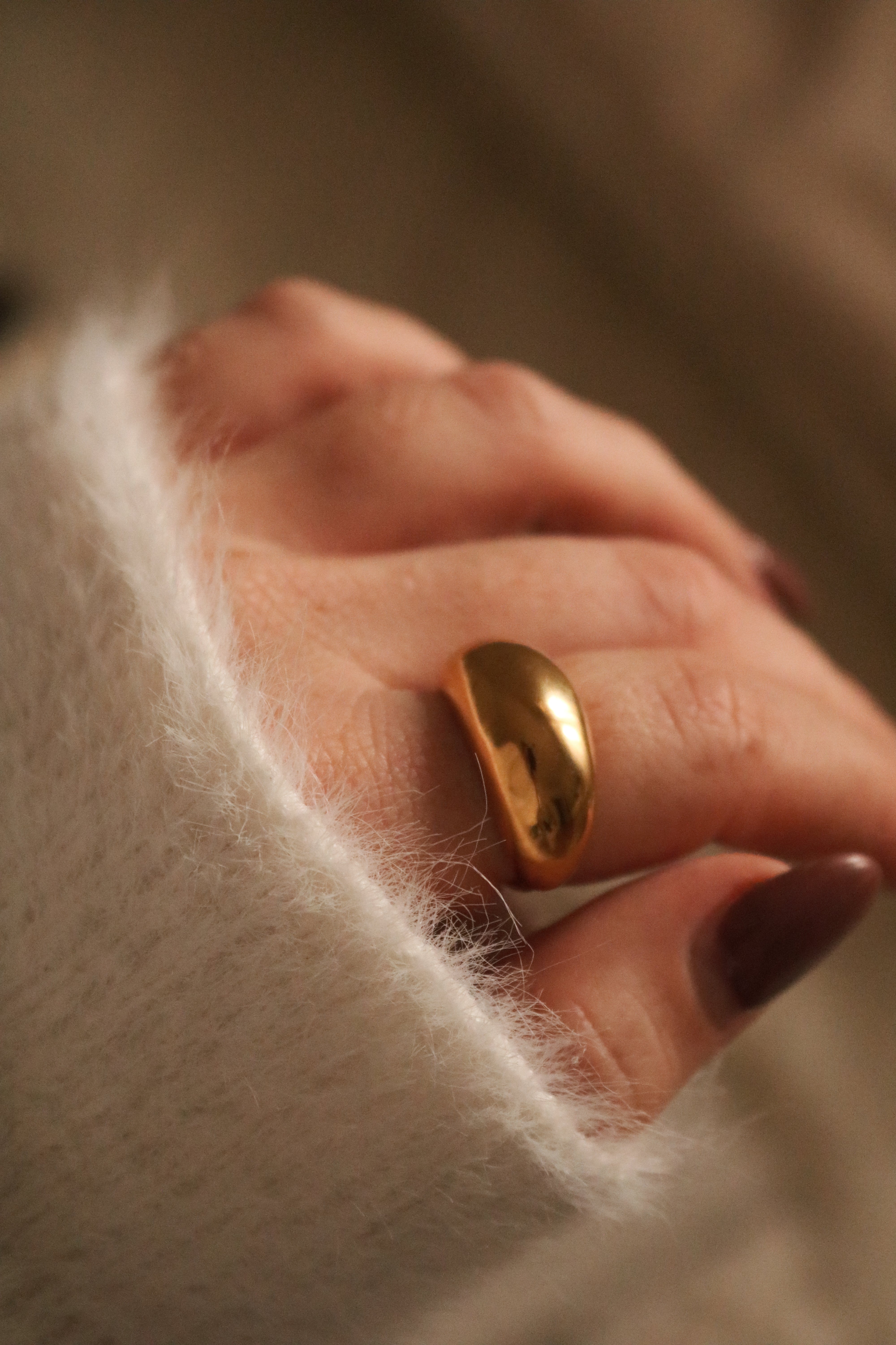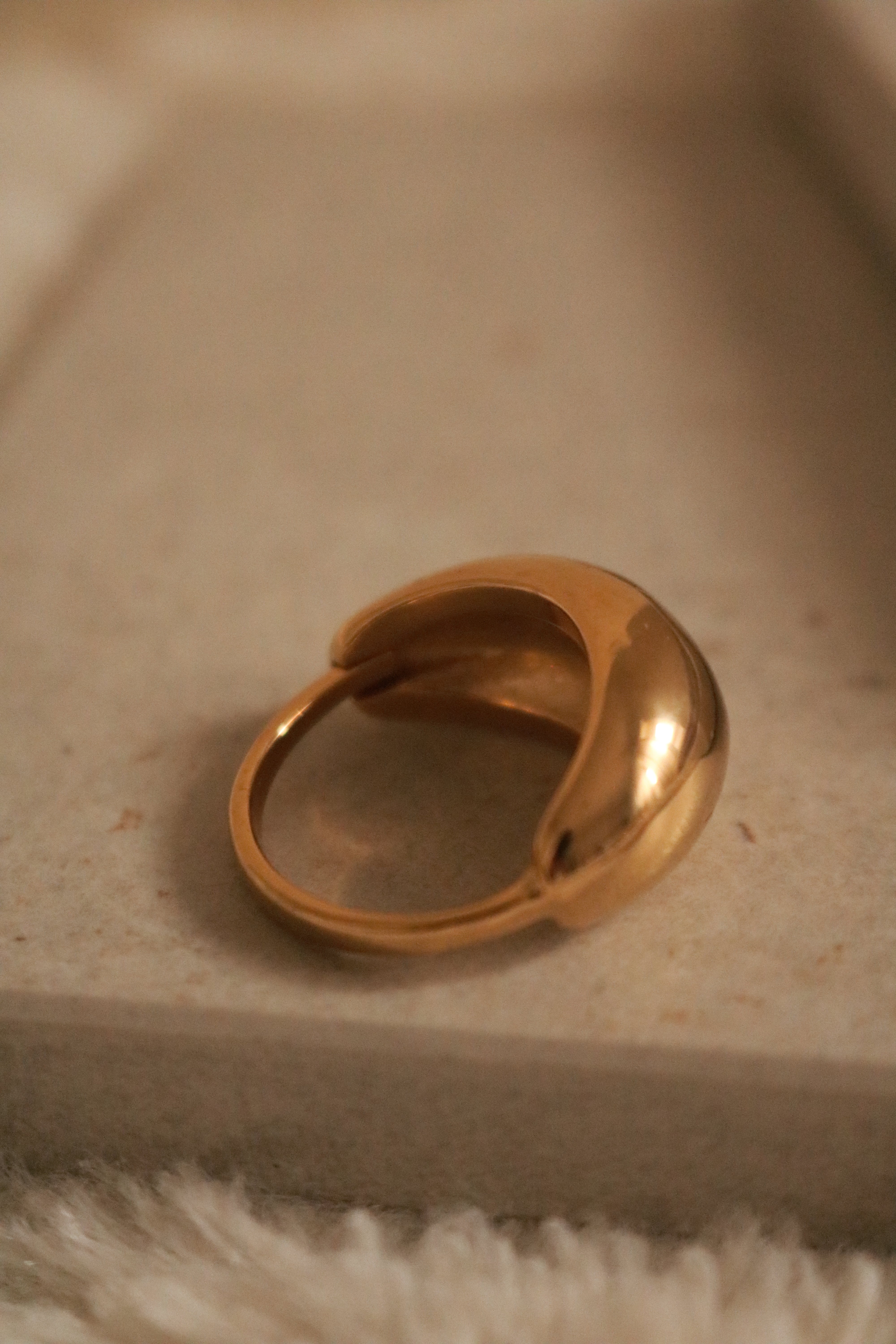 O Anel Ellis destaca-se pelo seu design bold e minimalista, com um acabamento dourado espelhado que capta a luz de forma irresistível.